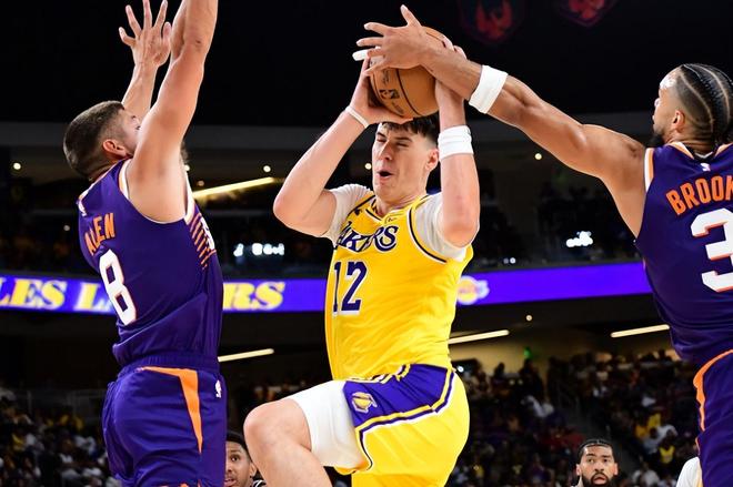 本場(chǎng)比賽中,湖人的先發(fā)側(cè)翼新援杰克-拉拉維亞(Jake LaRavia)的表現(xiàn)并不能令人感到滿意。拉拉維亞全場(chǎng)出場(chǎng)19分04秒,投籃6中3,三分線外2中1,得到了7分5籃板1助攻的數(shù)據(jù),還有2次失誤和3次犯規(guī),正負(fù)值為-15。拉拉維亞在進(jìn)攻端的表現(xiàn)還算是馬馬虎虎,利用有限的出手次數(shù),他倒是也展現(xiàn)出了比較全面的得分能力,不過(guò)他在支配球方面的能力也沒(méi)有辦法發(fā)揮出來(lái)。另一方面,拉拉維亞在防守端其實(shí)是被大家寄予了厚望的,大家都認(rèn)為他有機(jī)會(huì)成為一名合格的外線防守者,并且在防守端承擔(dān)起大量的責(zé)任,但是至少在本場(chǎng)比賽中,他在防守端的表現(xiàn)其實(shí)是不太理想甚至可以說(shuō)是有些糟糕的。拉拉維亞并沒(méi)有展現(xiàn)出足夠出色的防守能力,對(duì)手可以非常輕松地突破他的防守,這顯然并不是一個(gè)好的信號(hào)。