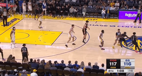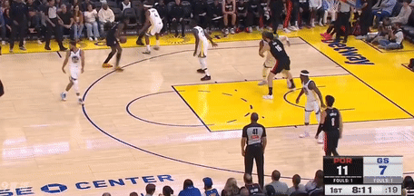 第一節(jié)勇士斯蒂芬-庫里拿下7分,開拓者卡馬拉拿下12分,首節(jié)戰(zhàn)罷勇士25-39落后開拓者