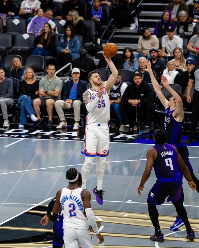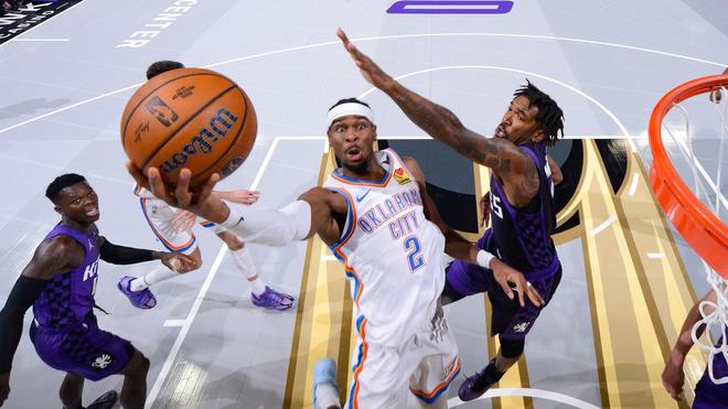 哈爾滕施泰因在次節(jié)發(fā)難,亞歷山大率隊在外線狂下三分雨,OKC不斷掀起進攻狂潮。施羅德手感冰涼,拉文斗志低迷,薩克拉門托只能依靠威少、德羅贊、蒙克等人的單打零星取分。半場打完,雷霆以70比56領先,國王單節(jié)以24比40落后。